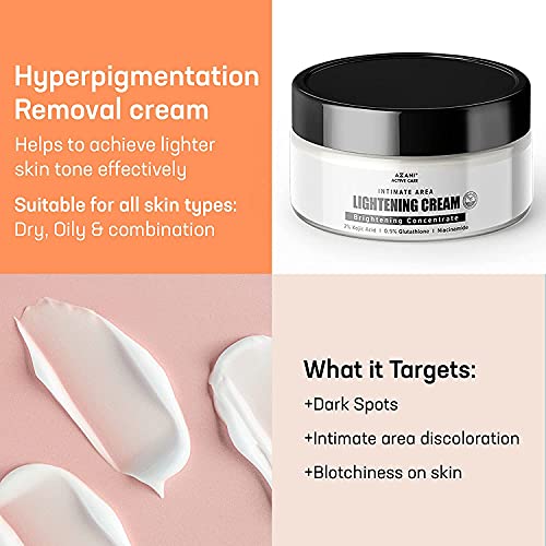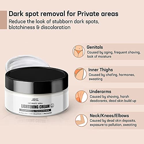 Azani Intimate Area Lightening & Whitening Cream – 50gm | Underarm, Bikini Area, Neck, Hip, Thigh, Intimate Area, Elbow | Intense Dark Spot Removal | 2% Kojic Acid, Niacinamide | Women & Men