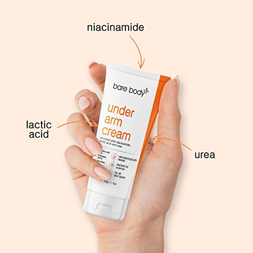 Bare Body Plus Underarm Cream, Dermatologically Approved, With Niacinamide and Lactic Acid, Lighten Dark and Patchy Underarms, 50gm