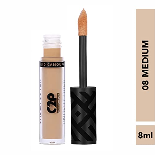C2P Pro Under Cover Long-Wear Liquid Concealer With Vit-E | High-Coverage, Natural-Looking Finish, Oil-Free, Waterproof | Neutralizes Dark Circles, Puffiness, Fine Lines (Medium 08, 08 ml)