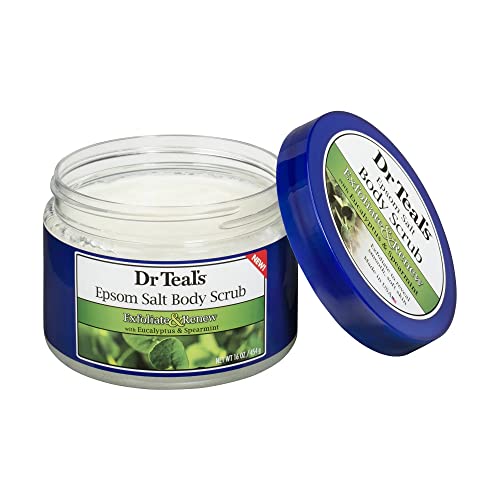 Dr Teal’s Exfoliate & Renew with Eucalyptus & Spearmint Epsom Salt Body Scrub is formulated with Pure Epsom Salt (Magnesium Sulfate USP), Natural Essential Oils, and Minerals to exfoliate and gently polish your skin. Eucalyptus & Spearmint essential oils soothe and rejuvenate your senses. Our scrub is enriched with Jojoba Oil, Aloe Vera, Vitamin E, and Shea Butter to leave skin smooth and moisturized. Massage onto the skin in circular motions to slough away rough, dry areas. Great for use in a bath or shower for the whole body or as a hand scrub. Cruelty-free, vegan, and free from parabens and phthalate, we craft our body scrubs to rejuvenate the body, quiet the mind, and promote all forms of wellness.