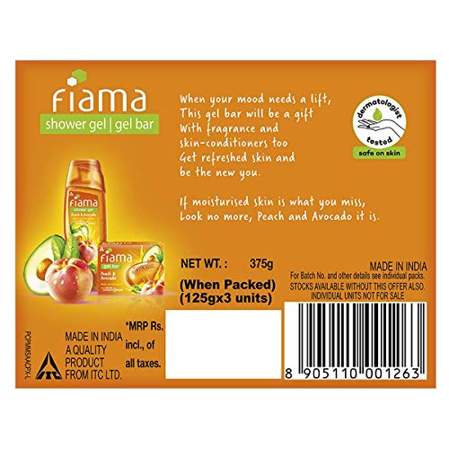 Fiama Gel Bar Peach And Avocado For Moisturized Skin, With Skin Conditioners, 125g Soap (Pack Of 3)