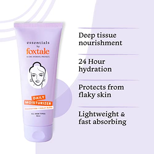 FoxTale Essentials Daily Glow Face Moisturizer,Clinically Proven Brightening Ingredients – Niacinamide,Kokum Butter And Vitamin E For 24 Hour Hydration,Fast Absorbing,Men&Women,All Skin Types,50 Ml