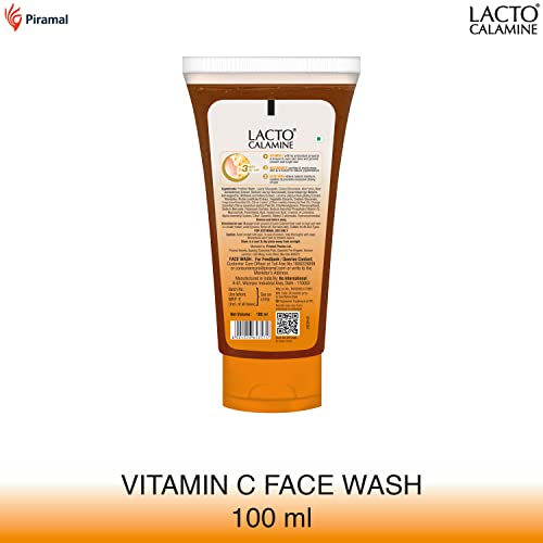 Lacto Calamine Vitamin C Face Wash with Aloe Vera & Niacinamide for Bright and Glowing Skin| Exfoliates skin, reduces pigmentation, No parabens, no sulphates 100 ml, Orange