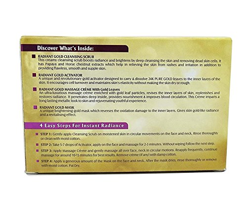 For a nourished and radiant skin, Lotus Herbals radiant gold cellular glow facial kit is the perfect facial kit. For a glowing skin, this kit comes with revitalizing effects. This kit contains 4 different creams with natural ingredients such as 24k gold leaves, horse chestnut and papaya extracts. This kit contains an exfoliating cleanser, activator, massage cream with gold leaves and gold mask. Its unique radiant gold activator is designed to hydrate 24k gold leaves in the skin. Its radiant gold activator helps to maintain the elasticity of the skin with complete moisturisation and promotes the cell turnover. This facial kit comes with a deep cell activation system for the deep cleansing of the skin.