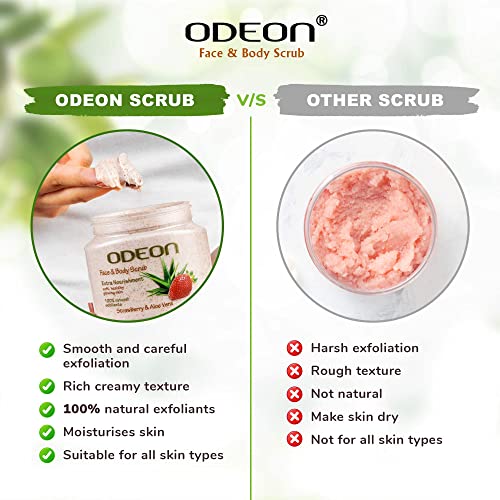 ODEON Strawberry & Aloe Vera Scrub (300ml) | Body Scrub for Tan Removal | Gentle Exfoliation Scrub for a Smoother Complexion | Tan Removal Bathing Scrub with Goodness of Real Strawberries & Aloe Vera’s Calming Properties