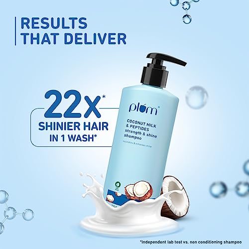 Plum Coconut Shampoo for Dull Hair with Coconut Milk and Peptides for Strong & Shiny Hair I 22x shine I Soft, silky hair I Shampoo for Women and Men | SLS sulphate and paraben free shampoo I 250ml