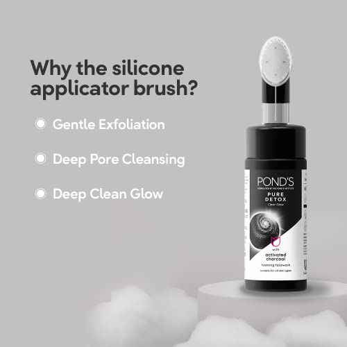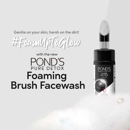 Pond’s Pure Detox Foaming Brush Facewash for Clear Glow, Gentle Exfoliation, Deep Clean, All Skin Types, 150 ml