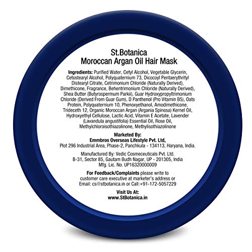 St.Botanica Moroccan Argan Hair Mask, 200g infused with Moroccan Argan Oil for Deeply Conditioning & Hydrating Dull & Dry Hair | No Parabens & Sulphates | Vegan & Cruelty Free