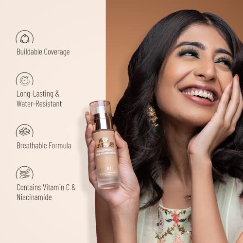 Swiss Beauty High Performance Foundation | Water-Resistant | Medium to Buildable Coverage | Lightweight | Easy to Blend | With Vitamin C & Niacinamide | Natural Beige, 55g